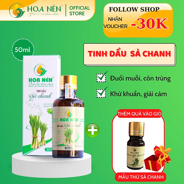 Tinh dầu Sả Chanh nguyên chất 50ml - Hoa Nén - Vegan - Đuổi muỗi, giải cảm, khử mùi
