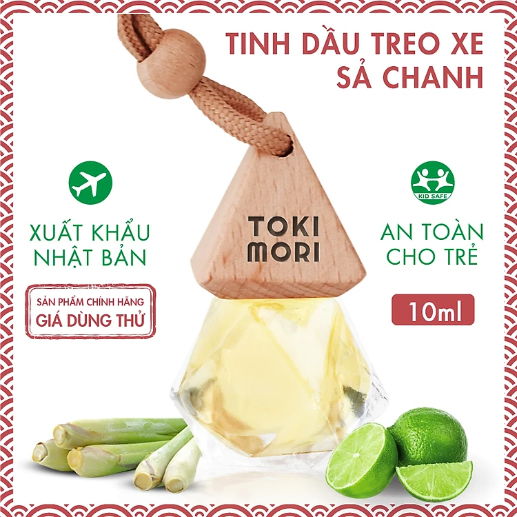 Tinh Dầu Sả Chanh Treo Xe TOKI MORI Xuất Khẩu Nhật Bản (10ml) 100% Thiên Nhiên, An Toàn Cho Trẻ, Xông Phòng, Khử Mùi, Thơm Xe, Chống Ói, Kháng Khuẩn