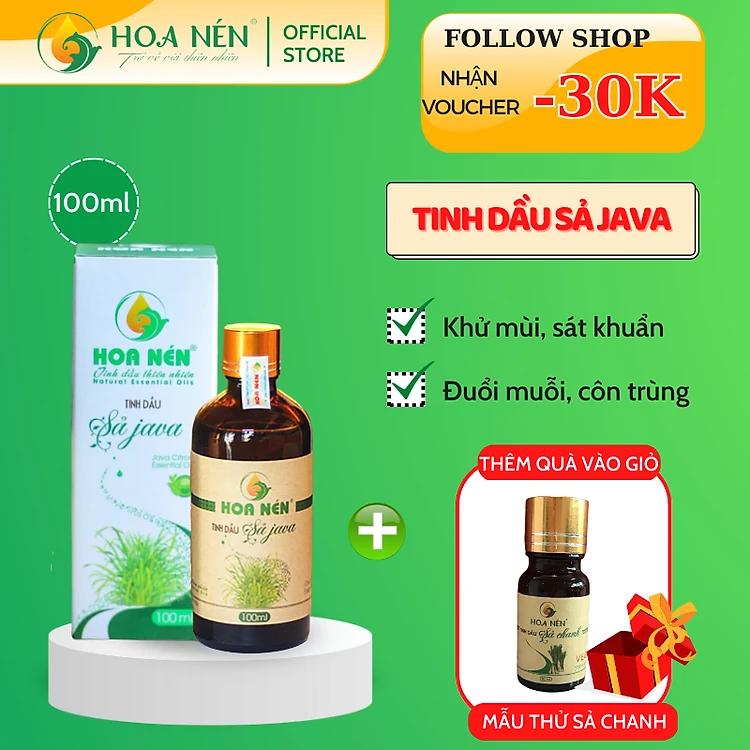 Tinh dầu Sả Java nguyên chất 100ml - Hoa Nén - Vegan - Đuổi muỗi, khử mùi