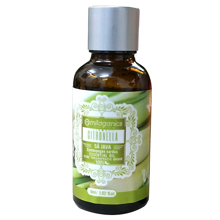 Tinh Dầu Sả Java Milaganics được chiết xuất 100% từ cây sả, đảm bảo độ nguyên chất, không hóa chất độc hại, đảm bảo an toàn cho sức khỏe người dùng.