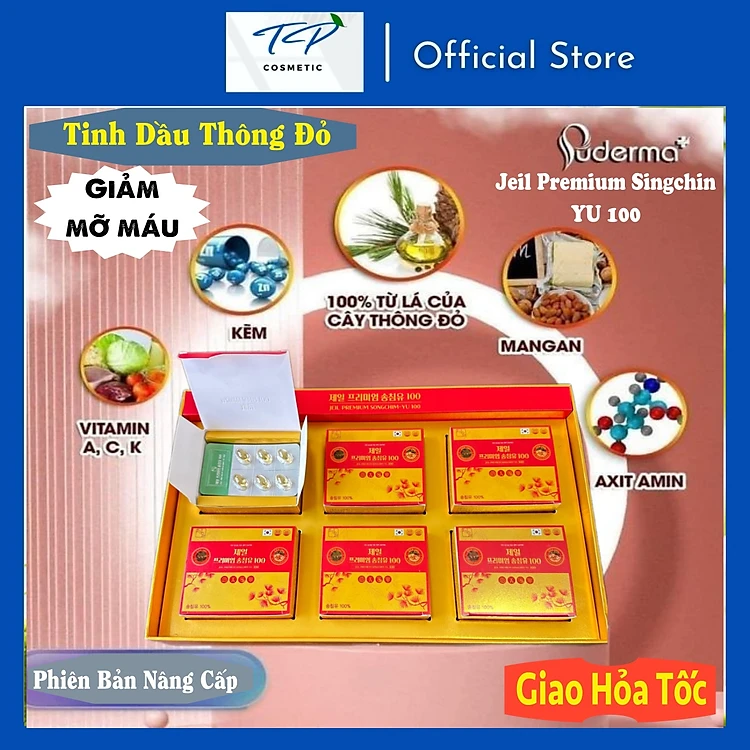 Tinh Dầu Thông Đỏ Hàn Quốc Jeil Premium Singchin YU 100 18o viên : Tan mỡ máu, hạ men gan, điều hóa huyết áp.