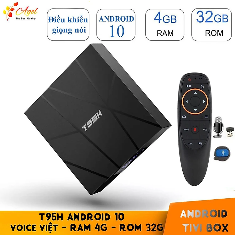 tivi box T95h điều khiển cử chỉ và giọng nói tiếng việt 4GB RAM 32GB ROM android 10 voice có cài sẵn ứng dụng truyền hình miễn phí vĩnh viễn - Hàng Nhập Khẩu