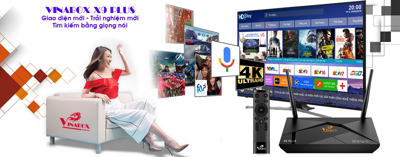 Tivi Box VINABOX X9 PLUS Bản mới 2020 -Android 7.1.2 Hỗ Trợ điều khiển GIỌNG NÓI - SẢN PHẨM CHÍNH HÃNG