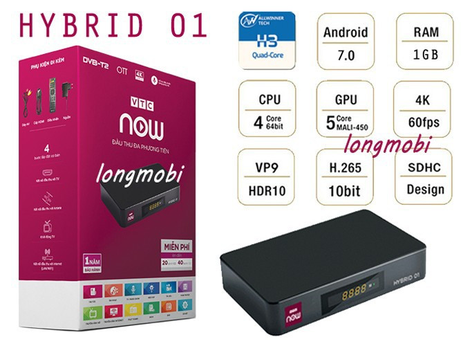 - VTC Now Hybrid 01 là đầu thu đa phương tiện đầu tiên kết hợp giữa truyền hình số mặt đất DVB T2 và truyền hình internet OTT.