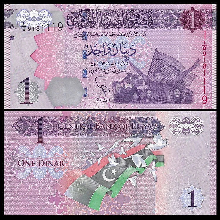 Tờ 1 dinar của Libya, quốc gia ở Băc Phi