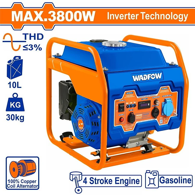 TỔ MÁY PHÁT ĐIỆN DÙNG XĂNG BIẾN TẦN 3800W WADFOW WGEAB06 - HÀNG CHÍNH HÃNG