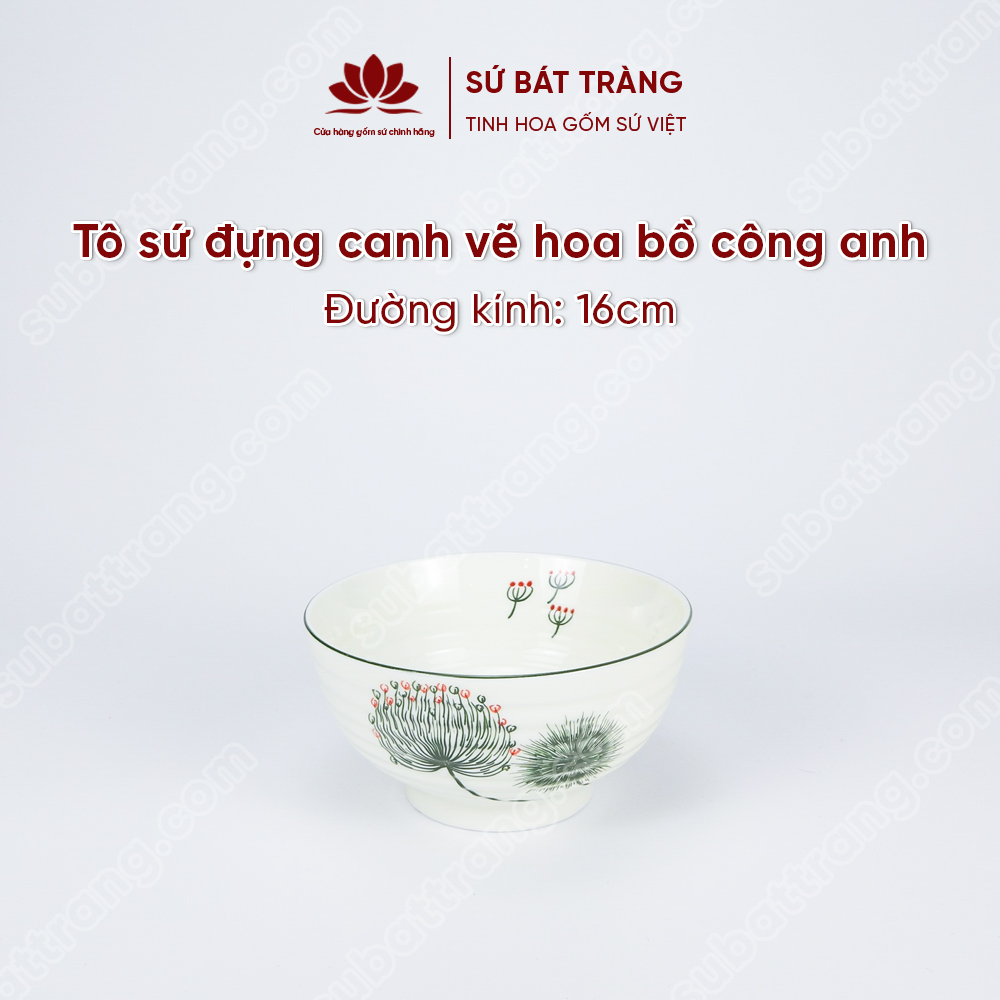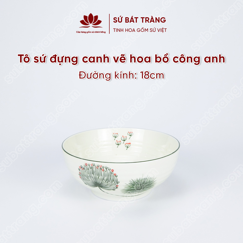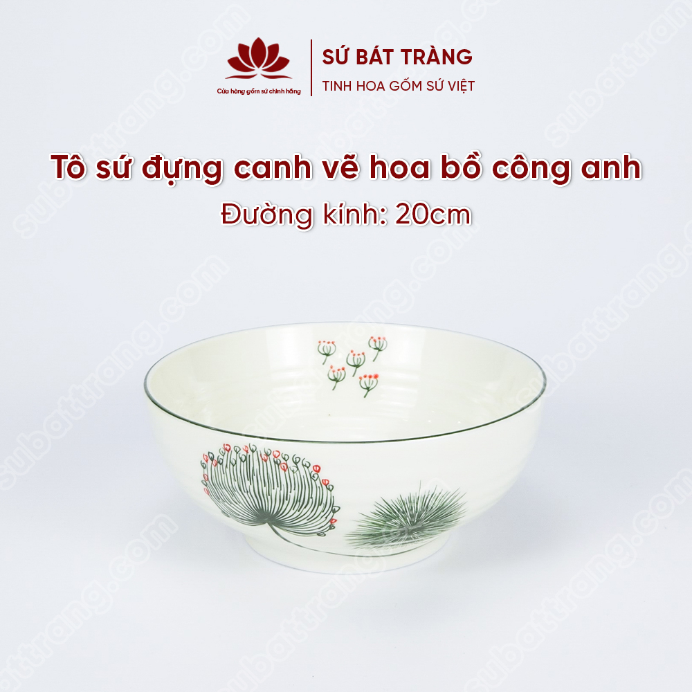 Tô sứ đựng canh Bát Tràng được bao phủ bởi lớp men kem sắc trắng sáng bóng và nhẵn mịn. Kết hợp với họa tiết nhỏ nhắn được người nhân tô vẽ tỉ mỉ, chi tiết cùng với những đường kẻ chỉ màu nâu nhạt khéo léo đồng bộ trên viền bát, đĩa tạo nên một bộ sản phẩm vơi vẻ đẹp mang giá trị thẩm mĩ hoàn hảo.