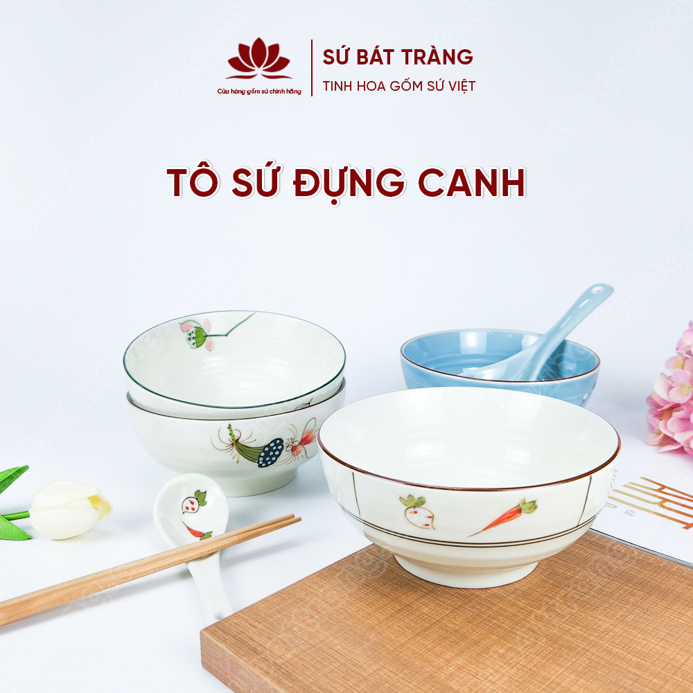 Tô sứ đựng canh đẹp - Đường kính 16cm - 18cm - 20cm - Nhiều họa tiết lựa chọn Bát Tràng