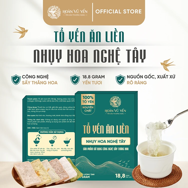 Tổ Yến Ăn Liền Sấy Thăng Hoa - 18.8g Yến Tươi - Dinh Dưỡng Tiện Lợi - Tăng Cường Sức Khỏe - Chống Lão Hóa - Tăng Cường Trí Nhớ - Chính Hãng Hoàn Vũ Yến - Cosmo Bird's Nest