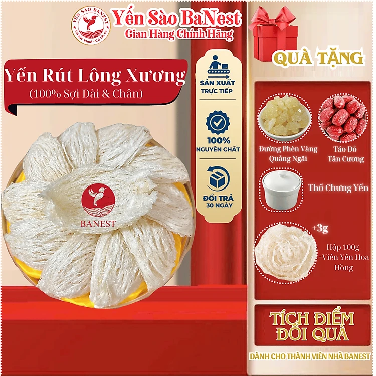 Tổ Yến Sào Tinh Chế Rút Lông Nguyên Xương THƯỢNG HẠNG 100% Sợi Tặng kèm đủ vị chưng - Yến Sào BaNest
