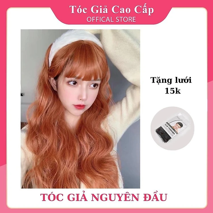 Tóc giả nguyên đầu nữ xù lửng màu cam, tặng kèm lưới trùm tóc, c8184