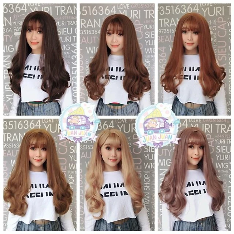 Tóc giả nữ cả đầu Tóc giả nguyên đầu xoăn đuôi bấm phồng chân tóc