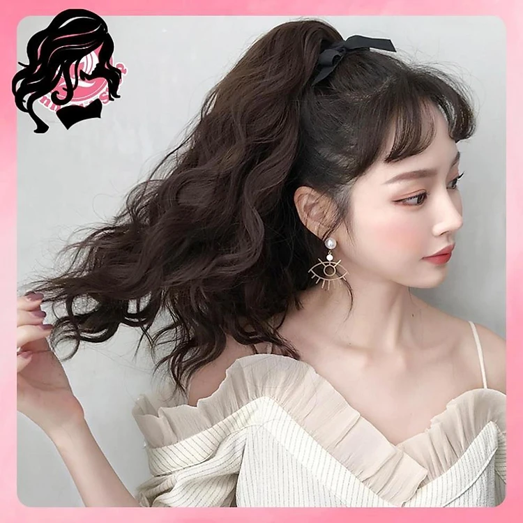 Tóc giả nữ cột đuôi CAO CẤP, tóc xoăn xù ngang vai, không bóng mềm mượt như tóc thật.