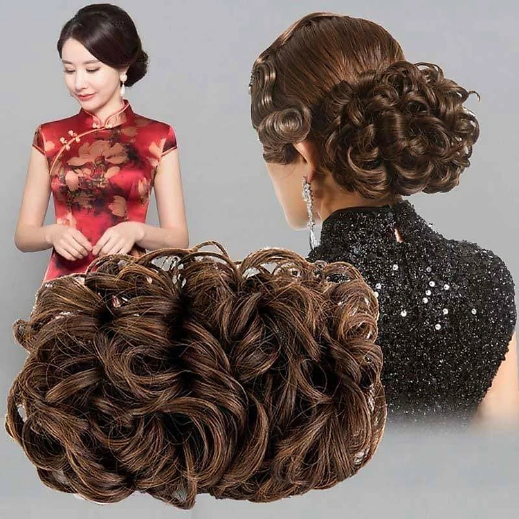 Tóc giả nữ trung niên, búi tóc giả trung niên retro cổ điển, búi phu nhân sang trọng