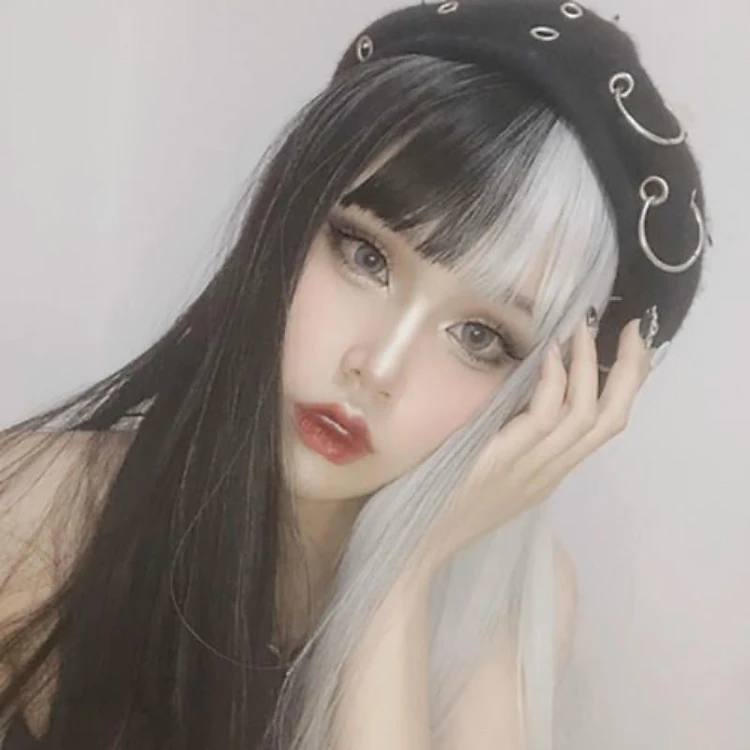 Tóc Giả Thẳng Dài 2 Màu Trắng Đen (có ảnh thật)
