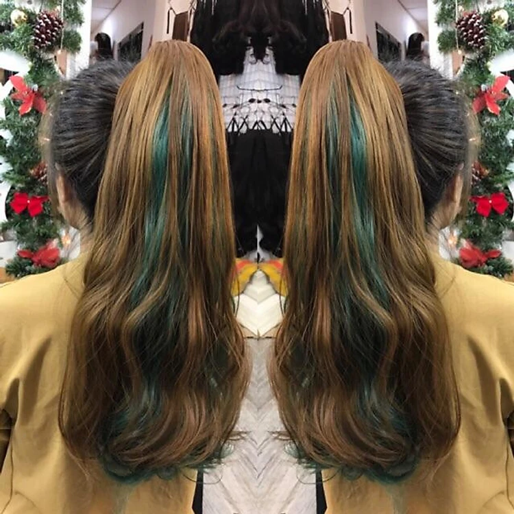 Tóc giả tơ nhật cao cấp Ngoặm line xanh rêu-hình thật