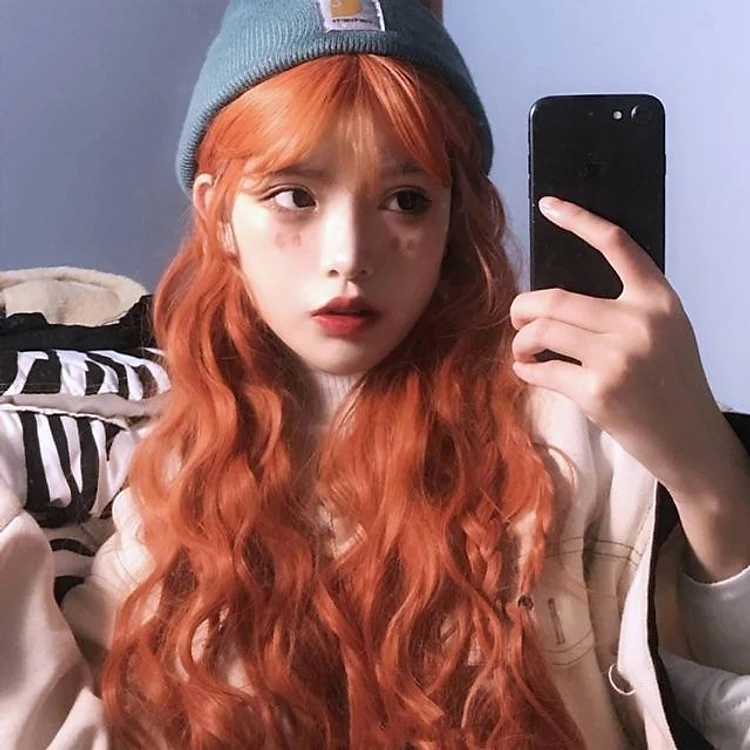 Tóc giả Xoăn Dài Màu Cam (có ảnh thật)