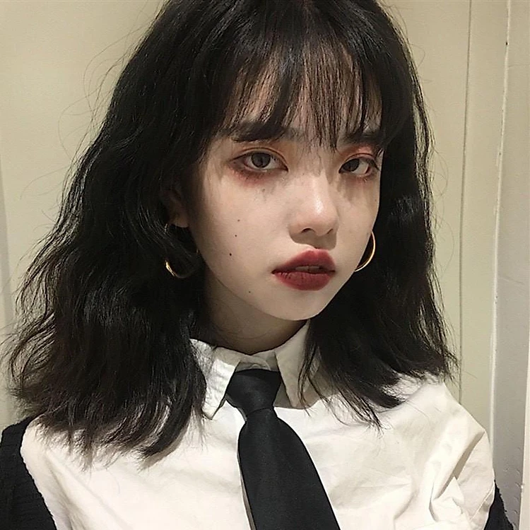 Tóc Giả Xoăn Sóng Ngắn Màu Đen