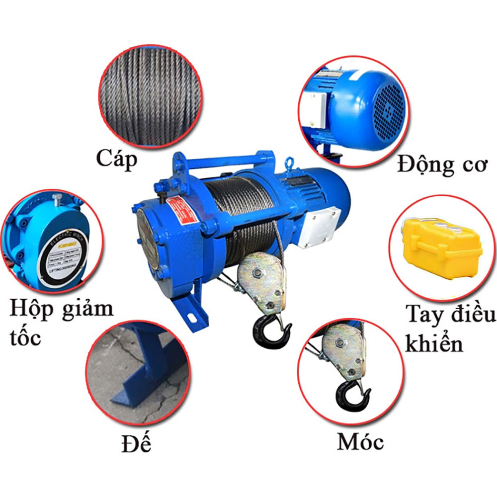 Điện 3 pha 380V: Cung cấp năng lượng mạnh mẽ, giúp máy hoạt động bền bỉ và tăng năng suất công việc so với tời điện 1 pha.