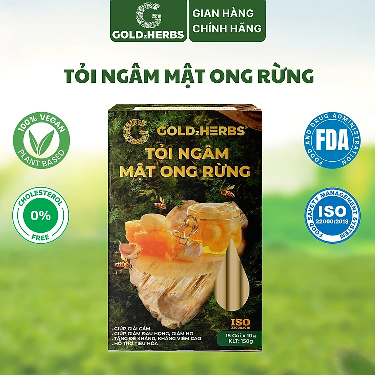 Tỏi ngâm mật ong rừng GoldzHerbs, 100% mật ong nguyên chất – Hũ 300g/ Hộp 15 gói x 10g