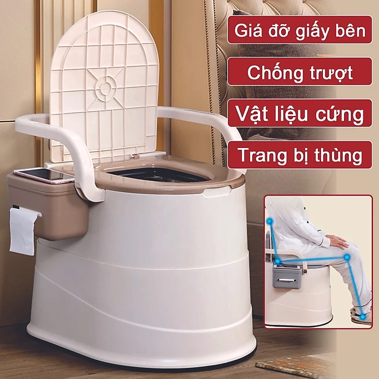 Tolet, Bồn cầu di động cao cấp có tay vịn, tựa lưng đệm, có hộp giấy, siêu chịu lực dành cho trẻ em, người già, phụ nữ sanh BH 1 năm HÀNG CHÍNH HÃNG ( màu ngẫu nhiên)