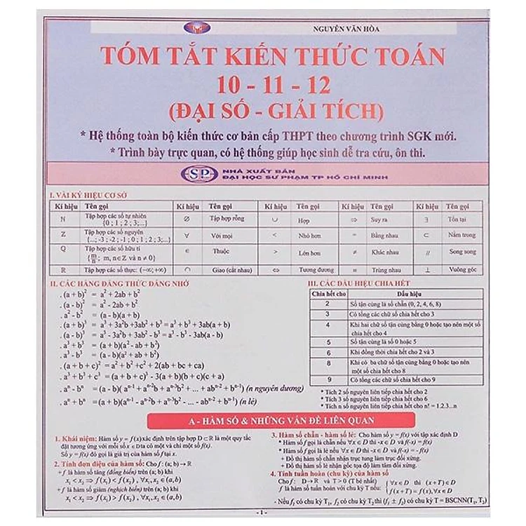 Tóm Tắt Kiến Thức Toán 10-11-12 - Đại Số - Giải Tích