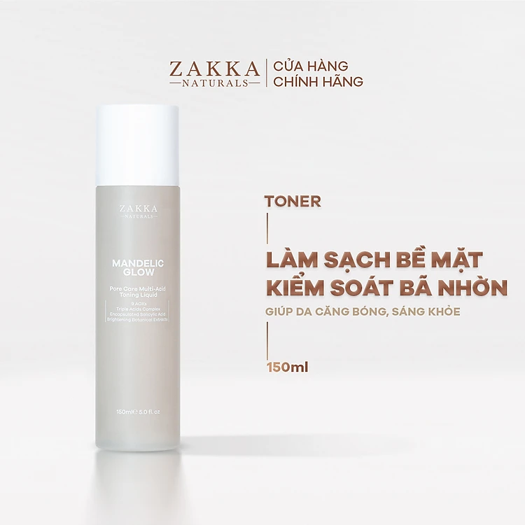Toner Tẩy Da Chết AHA, BHA Mandelic Glow Zakka Naturals 150ml
