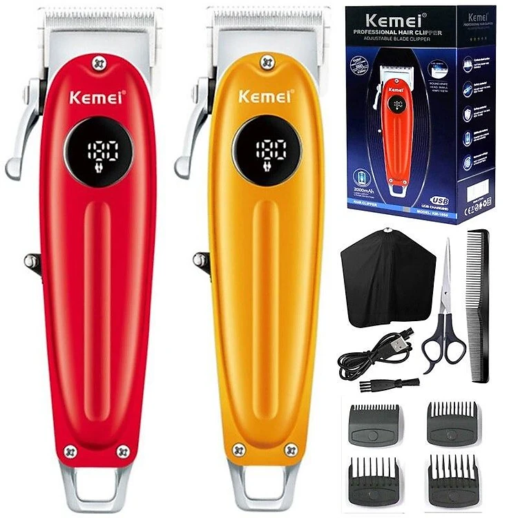 - Tông đơ cắt tóc cao cấp chuyên nghiệp Kemei KM-1955 toàn thân là hợp kim inox sang trọng có màn hình LCD hiển thị pin, sảu dụng sạc USB tiện lợi