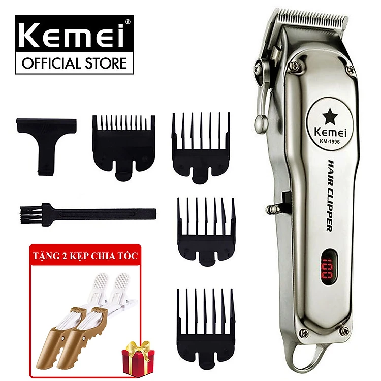 Tông đơ cắt tóc chuyên nghiệp Kemei KM-1996 có màn hình LCD hiển thị dung lượng pin có thể fade tóc cạo trắng điêu khắc tóc TẶNG kèm 1 lược chia tóc cá sấu (Màu ngẫu nhiên )
