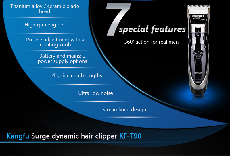 - Tông Đơ Cắt Tóc Kangfu KF-T90: là sản phẩm đời sau có mẫu mã thiết kế và động cơ hoạt động vượt trội hơn so với các dòng đời trước mang đến sản phẩm hoàn hảo hơn cho người sử dụng.