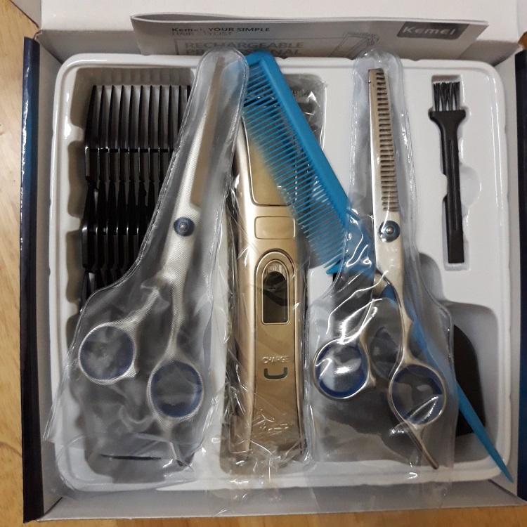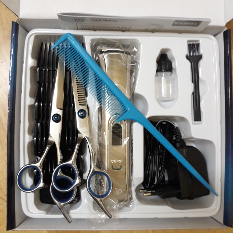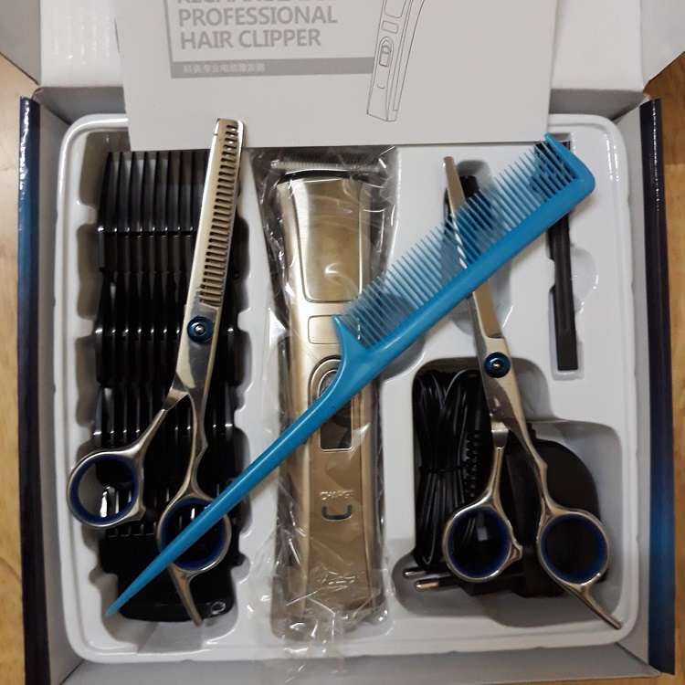 Tông Đơ Cắt Tóc KM 5017 - Tặng Kèm Bộ Kéo Cắt Và Tỉa Tóc Không Gỉ Và Lược
