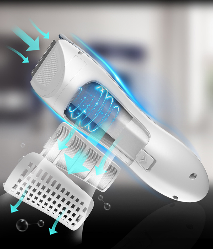 - Khả năng tự động hút tóc giúp các em bé không còn lo lắng về bị hỏng ngứa; hộp trữ tóc dễ dàng để làm sạch.
