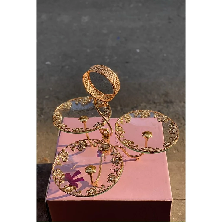 Tổng hợp Đĩa Thủy Tinh Khảm Hoàng Gia Cao Cấp | KỆ THỦY TINH 2 - 3 TẦNG KHUNG HỢP KIM CAO CẤP TRẮNG VÀNG HÌNH THỰC TẾ