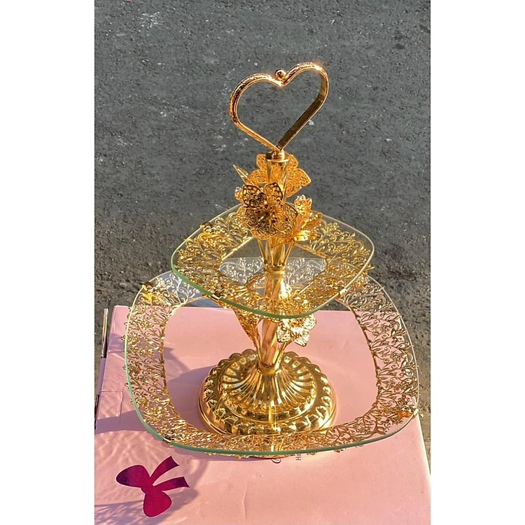 Tổng hợp Đĩa Thủy Tinh Khảm Hoàng Gia Cao Cấp | KỆ THỦY TINH 2 - 3 TẦNG KHUNG HỢP KIM CAO CẤP TRẮNG VÀNG HÌNH THỰC TẾ