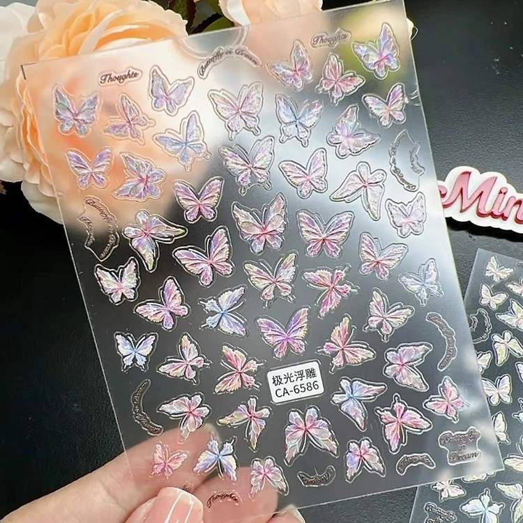 Tổng Hợp Sticker 5D Hot Hit Làm Nail Siêu Xinh Hình Dán Móng Tay Nơ Ren Hàn Quốc Bướm Nổi Hoa Nhiều Màu Labubu Nữ Women