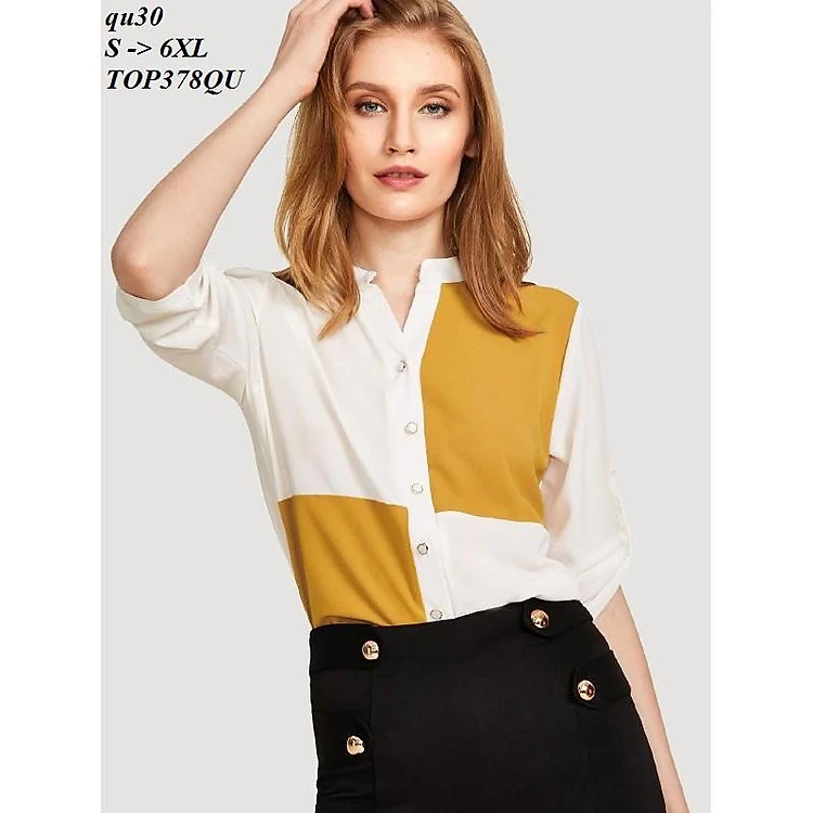 Áo sơ mi phối màu cổ trụ