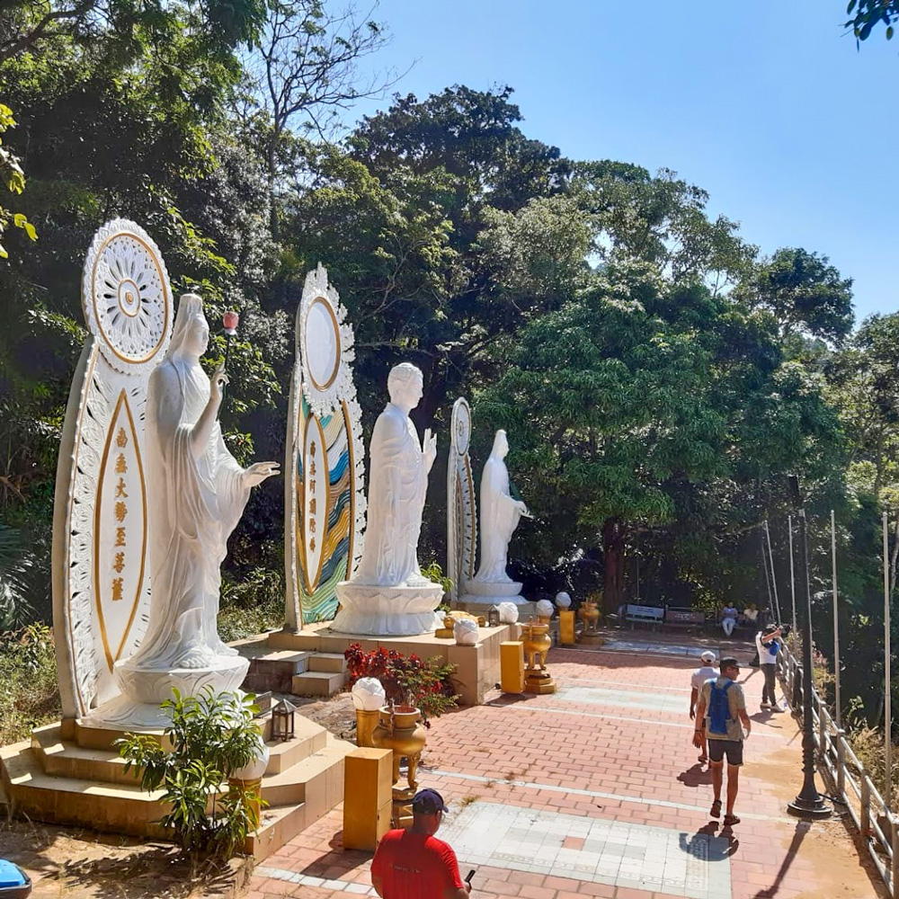 10h00: Đoàn dừng chân tham quan Núi Tà Cú, Quý khách được bao vé vào cổng và được đi xe điện tham quan chụp hình lưu niệm tại Khu Du Lịch. Ngoài ra quý khách có thể tự do mua vé cáp treo lên núi tham quan viếng Chùa Linh Sơn Trường Thọ, nơi có bộ tượng Tam Thế Phật được tạc bằng gỗ trầm hương trên 100 năm tuổi, và Tượng Phật nhập niết bàn lớn nhất Đông Nam Á, dài 49m, cao 11m (Chi phí cáp treo tự túc).