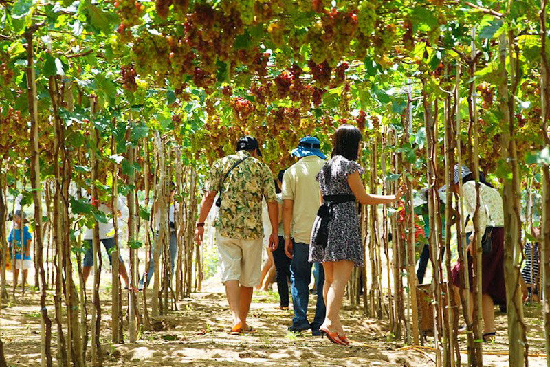 - Tiếp tục khởi hành về TP.HCM ghé tham quan vườn Nho mua đặc sản Phan Rang. Đoàn dừng chân dùng cơm trưa tại nhà hàng.