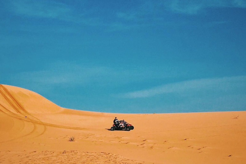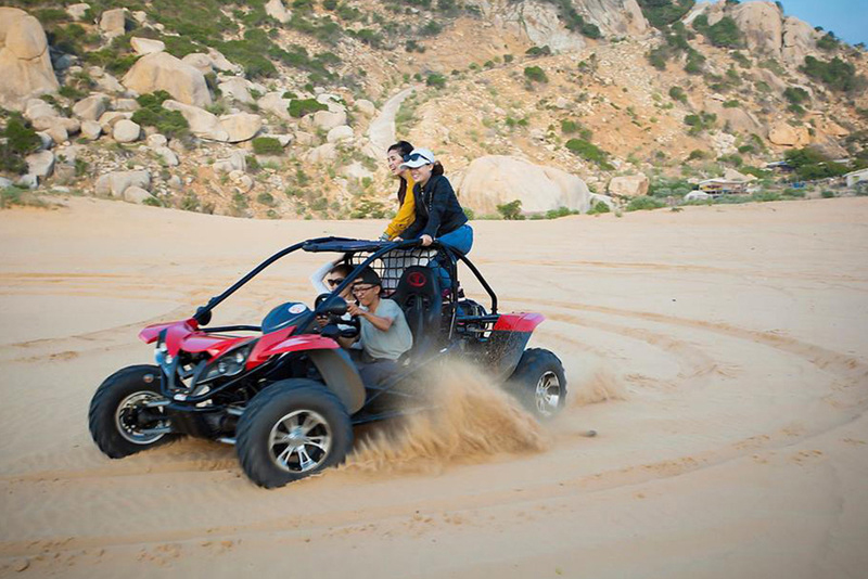 - Tự mình vượt qua những tường cát cao thẳng đứng, nghe tiếng gió rít qua tai và xuyên qua những làn cát trắng bụi tung mờ của vùng "Tiểu sa mạc” Mũi Dinh. Tận hưởng cảnh tuyệt đẹp của Mũi Dinh nối tiếng, bãi biển cực trong vắt đẹp mê hồn (chi phi UTV tự túc).