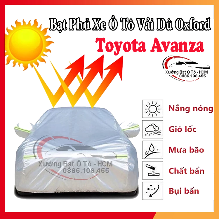 [TOYOTA AVANZA] Bạt Phủ Ô Tô Vải Dù Oxford, Tráng Nhôm Cao Cấp, Áo Trùm Bảo Vệ Xe TOYOTA AVANZA, Bạc Phủ Trùm Chống Nóng Chống Mưa, Chống Xước Xe, Bạt Của Xưởng Được May Theo Kích Cỡ Xe, Cam Kết Vừa Xe, Bền Và Đẹp Tới 2 Năm