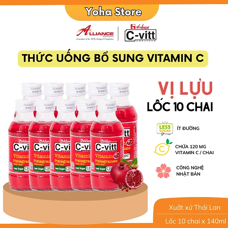 TPBS Nước C-VITT Giàu Vitamin C ,Tăng Đề kháng, Lốc 10 Chai x 140ml