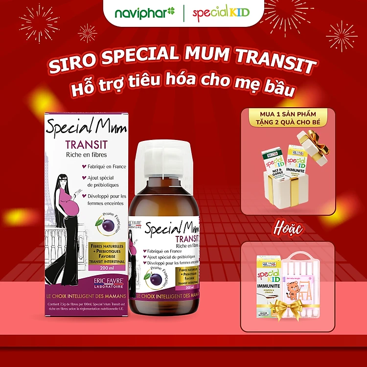 Siro Special Mum Transit bổ sung chất xơ, hỗ trợ tiêu hóa cho phụ nữ mang thai. Hỗ trợ tăng lợi khuẩn, làm mềm phân, giúp nhuận tràng cho mẹ bầu- 200ml