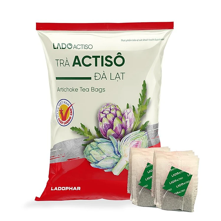 Trà atiso Ladophar gói 100 túi lọc artichoke Actiso Đà Lạt giúp mát gan thông mật lợi tiểu tặng 1 túi trà