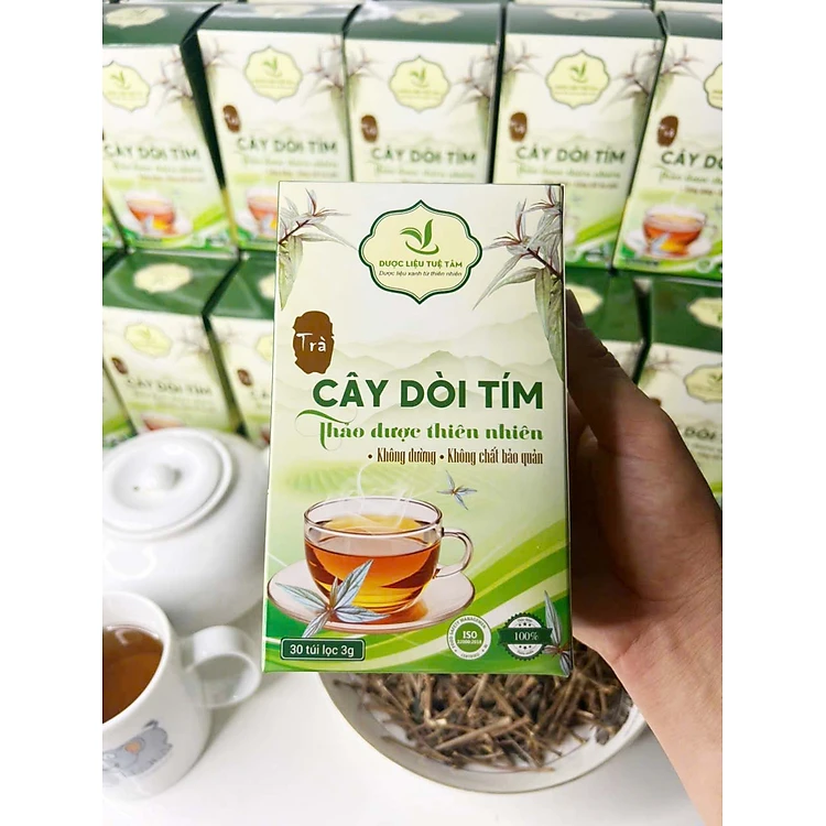 Trà cây dòi tím túi lọc Tuệ Tâm - Trà túi lọc cây dòi tím - Mỗi hộp có 30 gói 3g - Dùng cho người ho, ho lâu ngày, phổi yếu