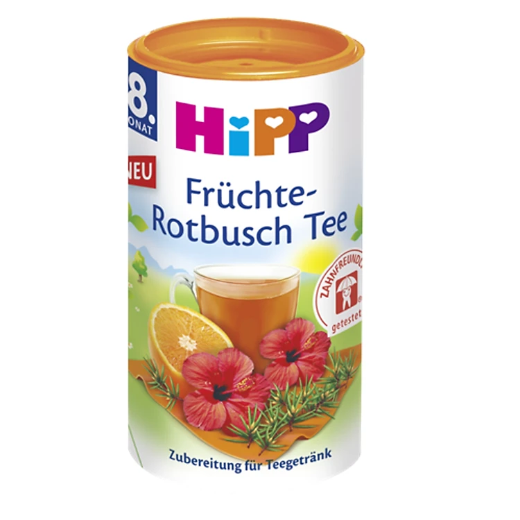 Trà Cốm Hòa Tan Hoa Quả, Hoa Dâm Bụt Với Isomaltulose HiPP 200g - 3667 Là thức uống dinh dưỡng hoà tan với chiết xuất từ cam, dâm bụt, thảo mộc Rooibos và Isomatulose – vị ngọt tự nhiên có nguồn gốc từ Glucose và Fructose đã được kiểm nghiệm không gây tổn hại cho răng. Với nhiều công dụng chăm sóc sức khỏe cho trẻ mang đến cảm giác dễ chịu khoan khoái, là thức uống giải khát hiệu quả,..