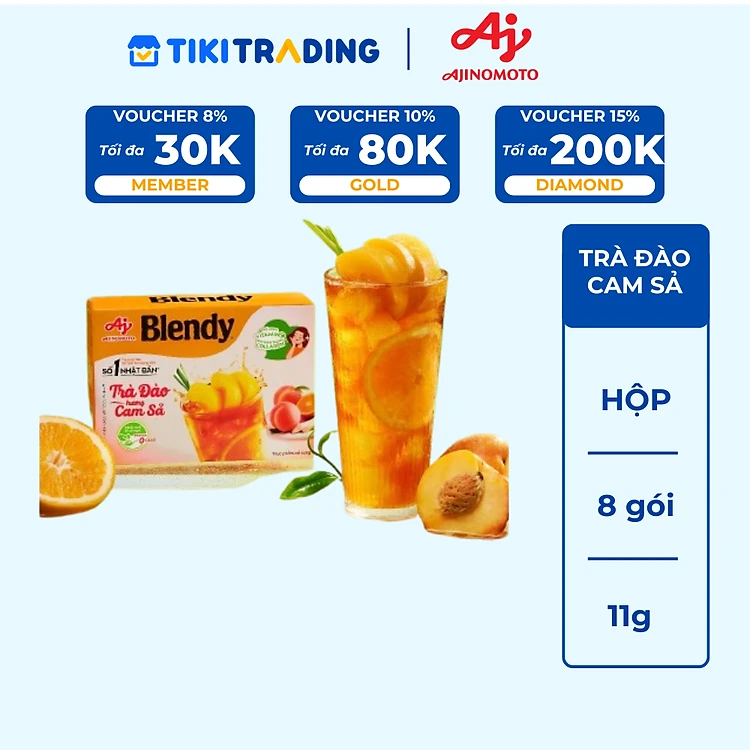Trà Đào Hương Cam Sả Blendy 11g/Gói (1 Hộp 8 Gói)