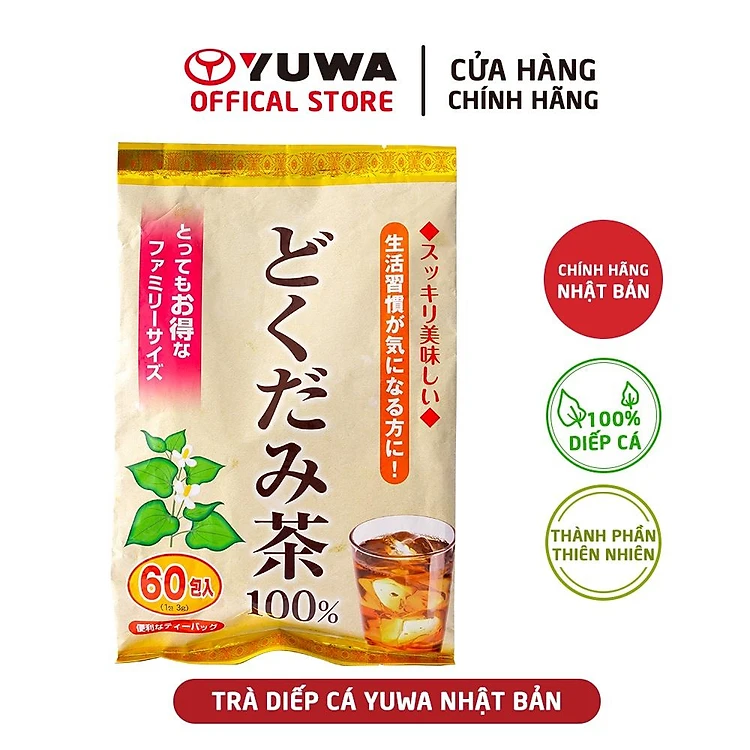 Trà Diếp Cá Yuwa 100% Lá Diếp Cá Giải Nhiệt Giải Độc, Trừ Nắng Nóng Mùa Hè Yuwa Dokudami Tea 100% Gói 60 gói