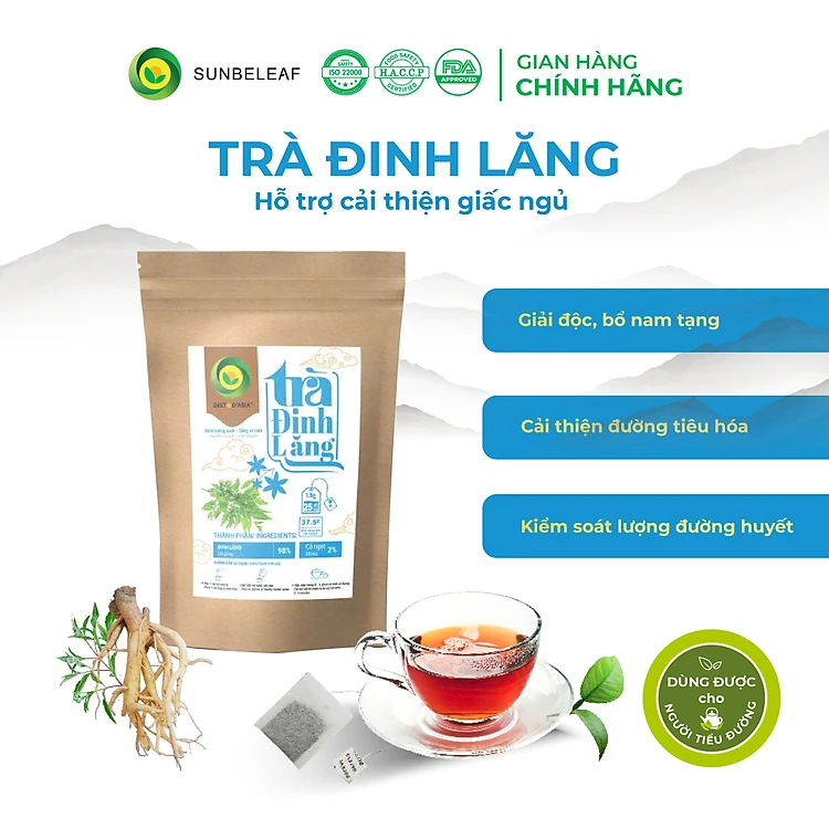 Trà Đinh Lăng Túi Zip - Delta D'Asia phục hồi cơ thể, ăn ngon, ngủ tốt (25 - 50 túi x 1,5 g)