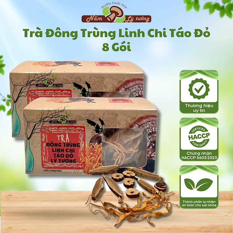 Trà Đông Trùng Linh Chi Táo Đỏ Lý Tưởng 55g, Hộp Trà Gồm 8 Gói Nhỏ, Sản Phẩm Đạt Chứng Nhận OCOP 3 Sao Của Thành Phố Hà Nội