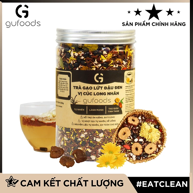 Trà gạo lứt đậu đen vị Cúc Long nhãn GUfoods (hũ 500g) - Tinh thần thoải mái - Tự nhiên - Lành mạnh